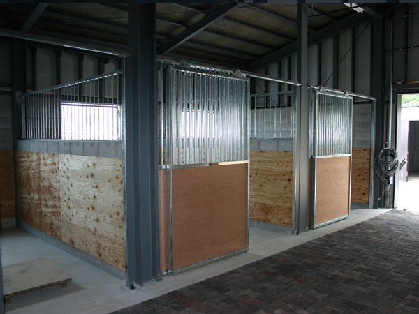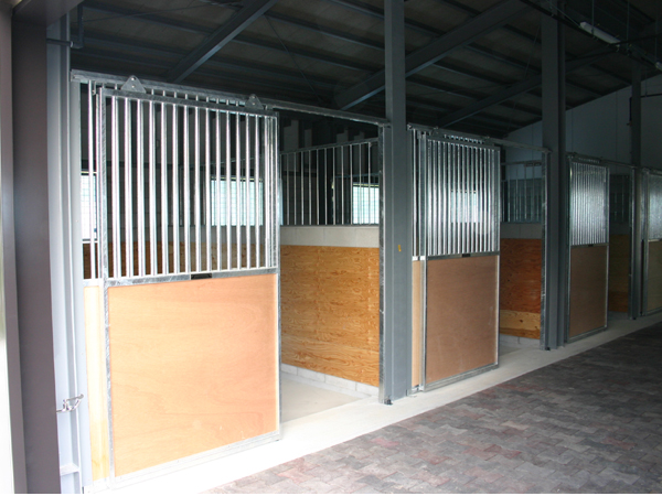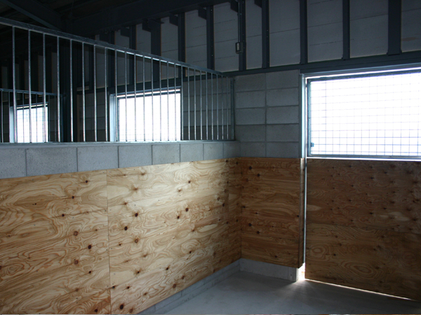 馬房パーティションを前面のみ採用したケースです。腰板はベニヤ24t仕様。