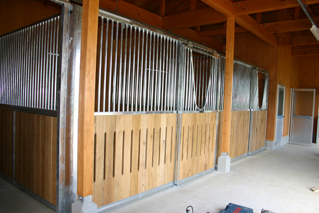 馬房パーティションを3面(前面/間仕切り/側面)採用したケースです。