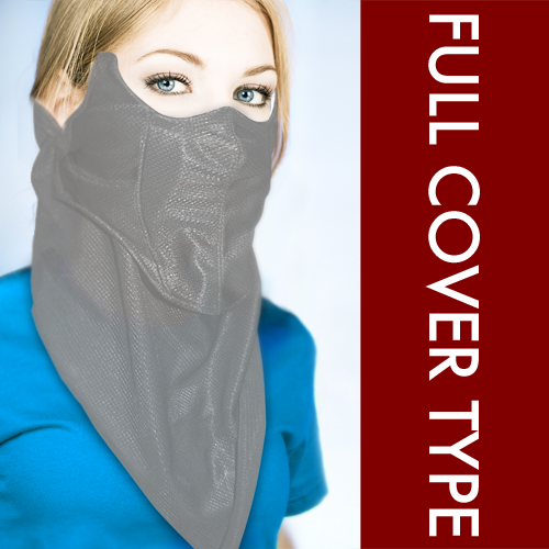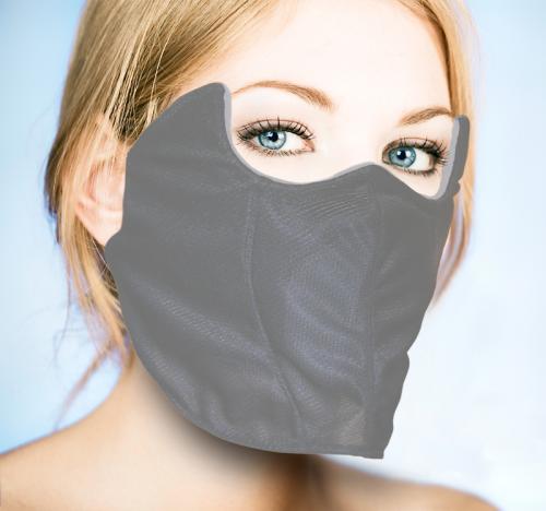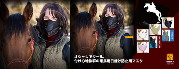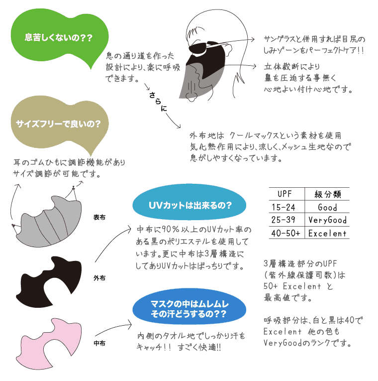 ●口の部分は呼吸しやすいクールマックス(デュポン社製)生地を使用、UVカット率の高いポリエステルを採用しています。