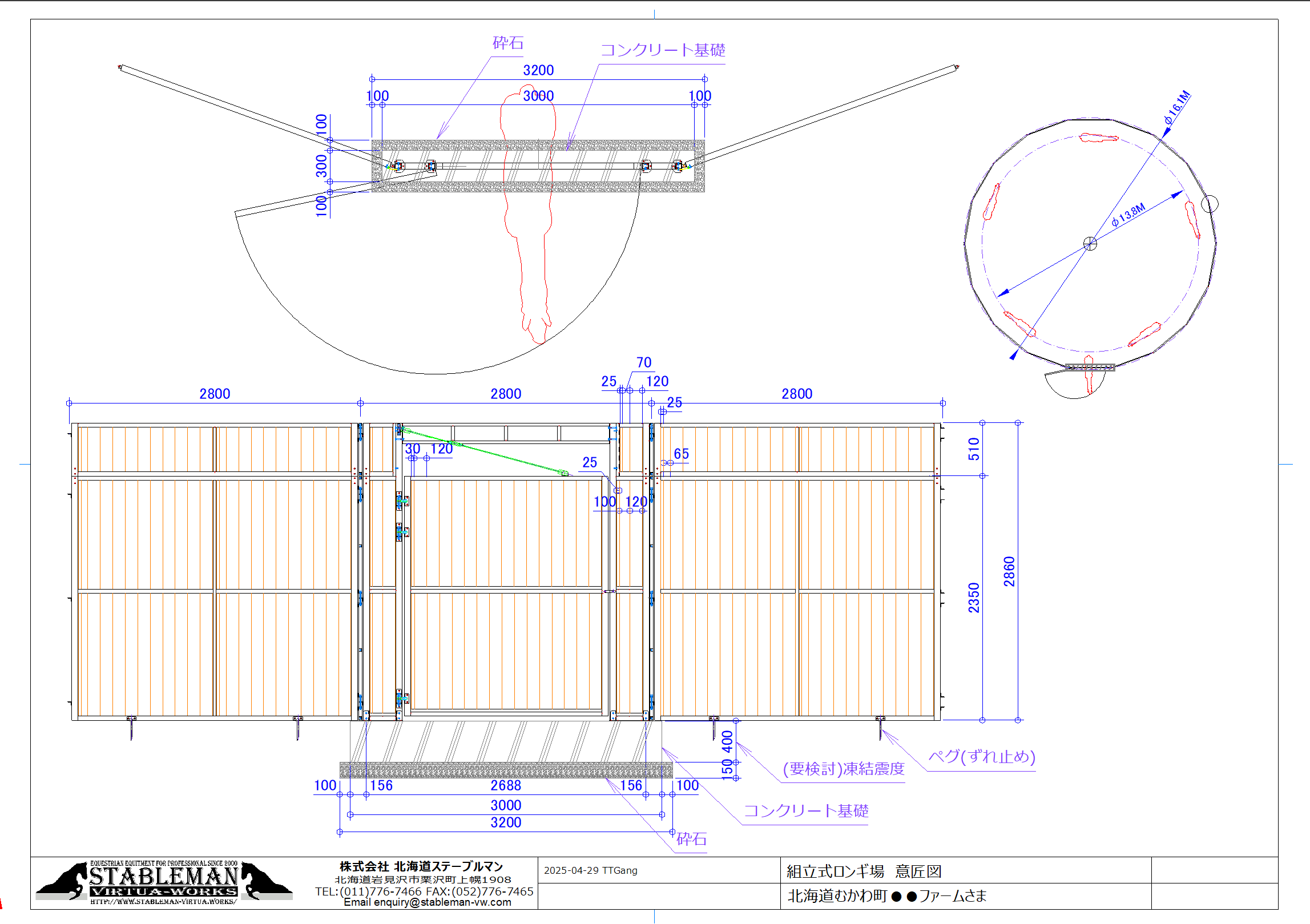 パネル組み立て式のロンギ場です。ロンギ場パネルをジョイントし腰板を組み入れて完成します。 出入口部の基礎は必須ですが、残りのパネルの基礎工事は省くことができます。 より強固に固定する場合は残りのパネルにも基礎を計画します。