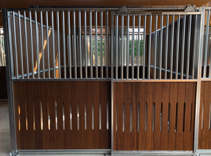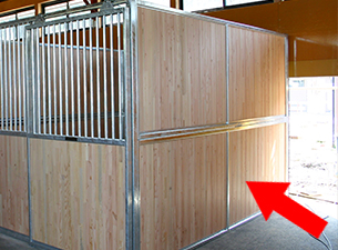 馬と馬を隔てるパネルを間仕切りパネルと呼びます。全面木張/上部格子/一部格子の仕様があります。
